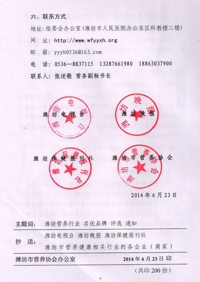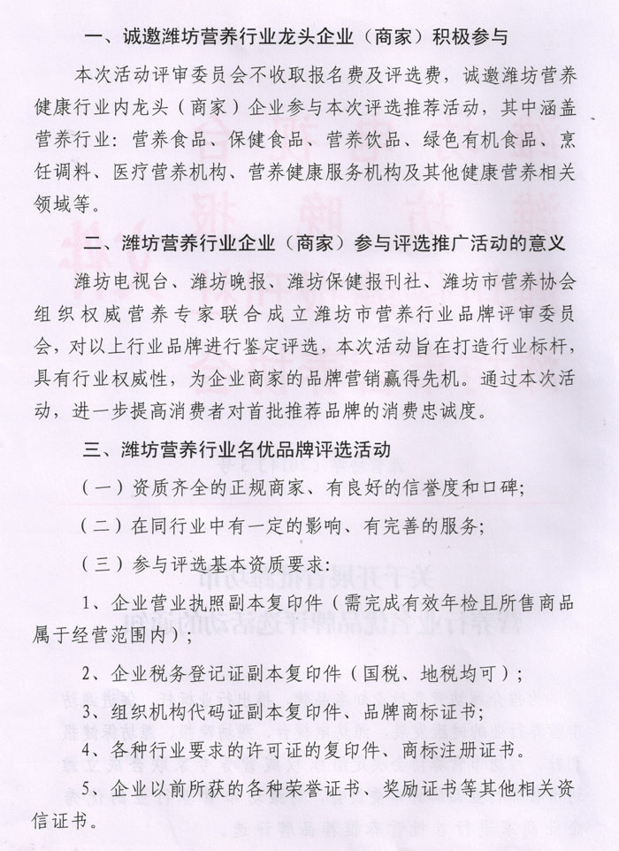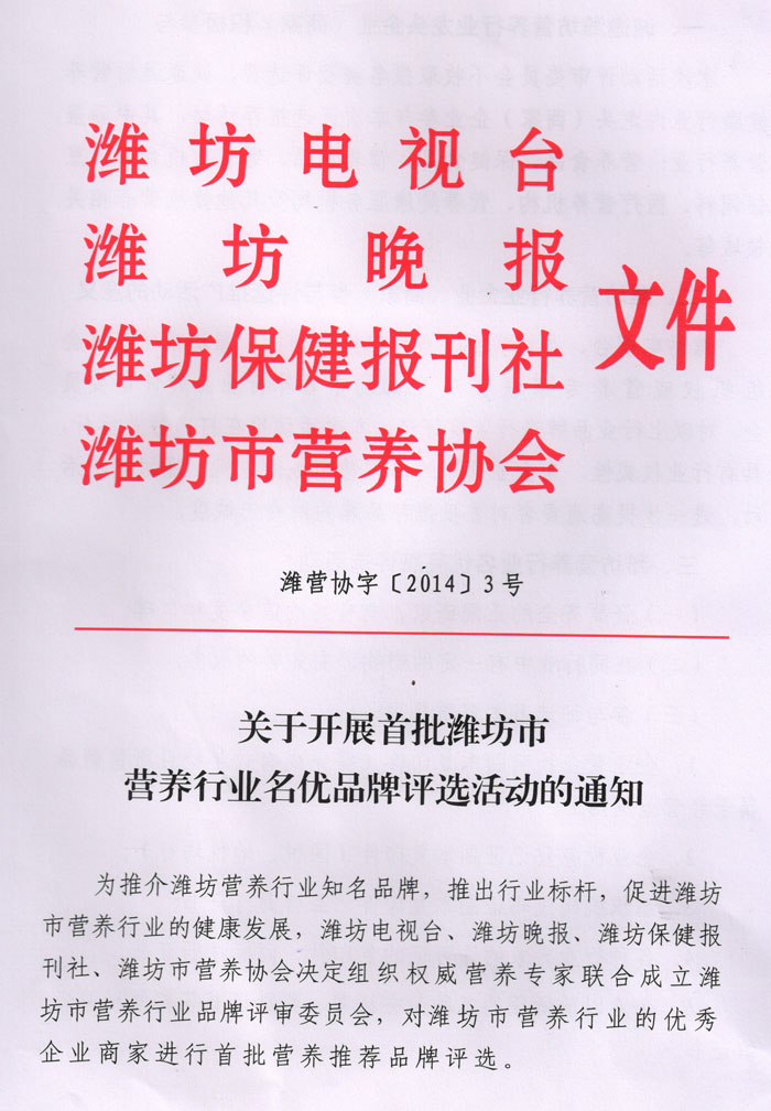 关于开展首批潍坊市营养行业名优品牌评选活动的通知