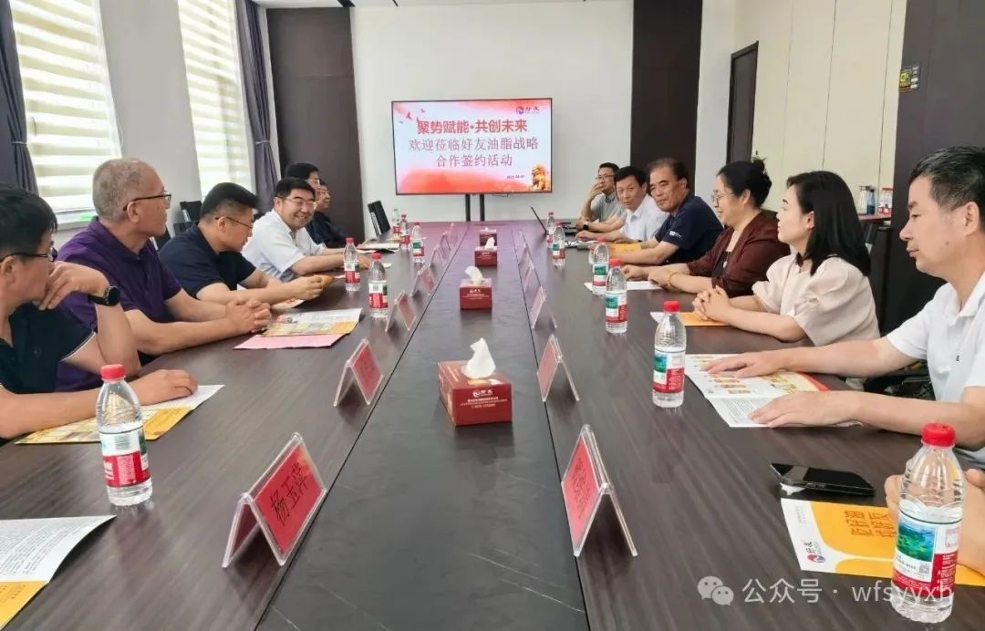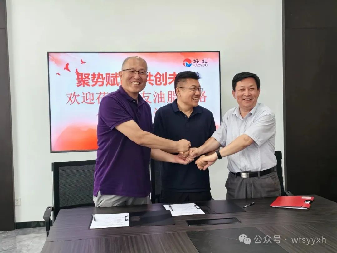 2025年6月7日,潍坊市营养协会与潍坊市工人文化宫(潍坊职工服务中心)、潍坊市融媒体中心平面空间传播分中心(原潍坊日报社)签署战略合作框架协议在昌乐好友油脂有限责任公司会议室举行。潍坊市营养协会会长孟繁亮,潍坊市总工会党组成员、工人文化宫主任付海廷,潍坊市融媒体中心平面空间传播分中心副主任张学启签约。